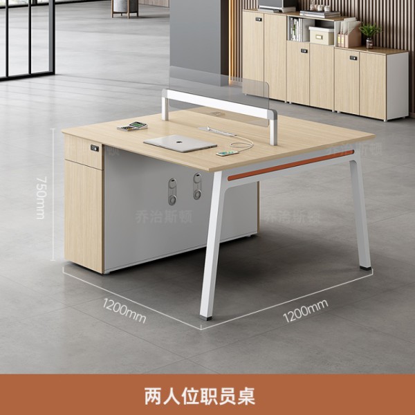 它的尺寸为 1200*1200*750MM,恰到好处的空间设计,能让两位使用者都感到舒适自在。温暖的橡木色,给办公环境注入了自然与温馨的气息。