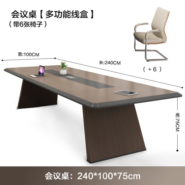 面料材质选用密度板,经过精心处理,表面光滑如镜,质感十足。密度板具有良好的稳定性和耐用性,能够承受日常使用的磨损,确保会议桌长久保持美观。