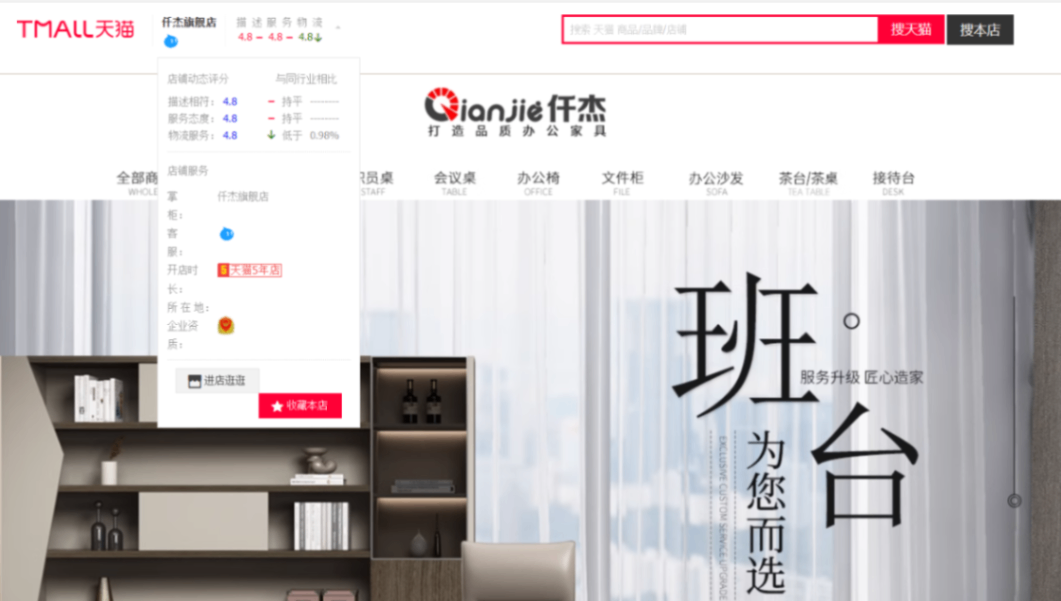 仟杰旗舰店是一家具有一定实力和特色的店铺。该店开店时长已达 5 年,在天猫平台上积累了丰富的经验。
