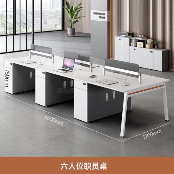尺寸方面,3600*1200*750MM 的规格宽敞合理,能够为 6 位员工提供舒适且互不干扰的工作区域,满足团队协作的需求。